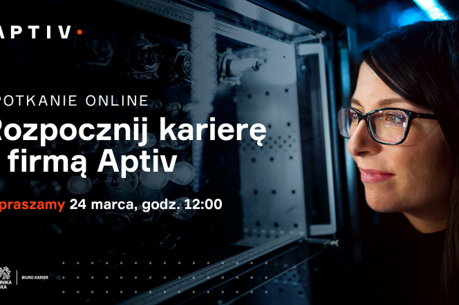 Biuro Karier PG oraz firma Aptiv zapraszają na spotkanie 24 marca o godzinie 12:00.