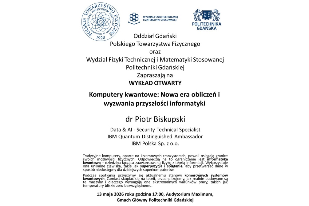 13 maja 2026 roku godzina 17:00, Audytorium Maximum, Gmach Główny Politechniki Gdańskiej